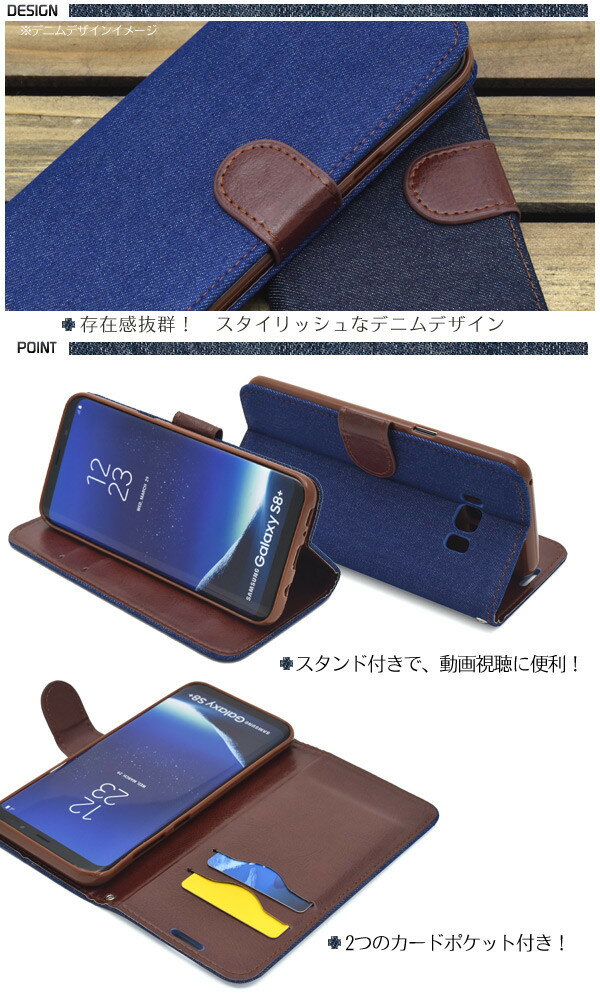 Galaxy S8+ SC-03J/SCV35用デニムデスタンドケースポーチ商品説明デニムデザインのGalaxy S8+ SC-03J/SCV35用スタンドケースポーチ。