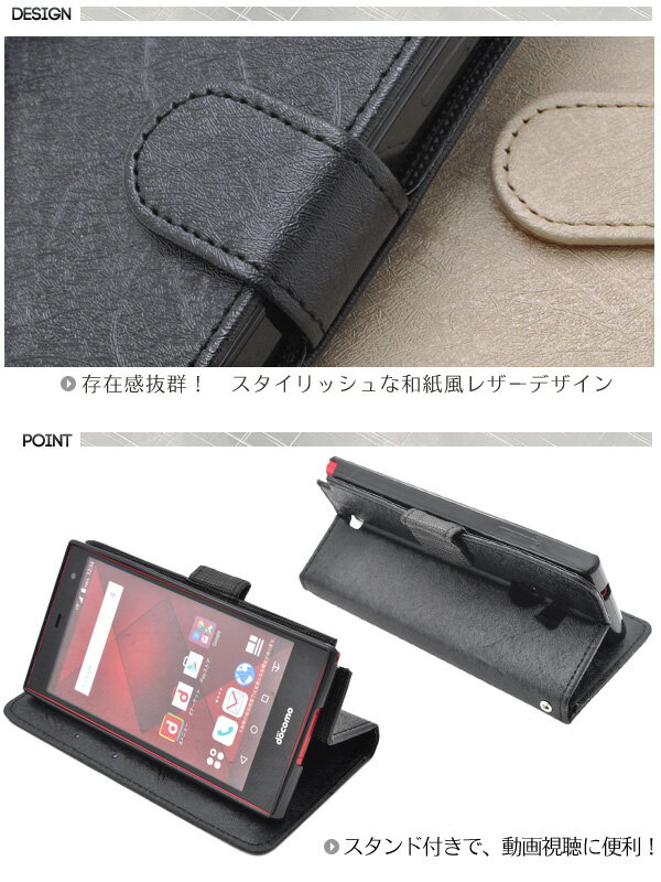 【arrows Fit F-01H用】和紙風レザーデザインスタンドケースポーチ【全4色】(ドコモ docomo スマートフォン スマホ アローズ フィット ケース カバー 手帳型 ブック型 二つ折り 横開き スマホケース f01h 和風)[M便 1/3]