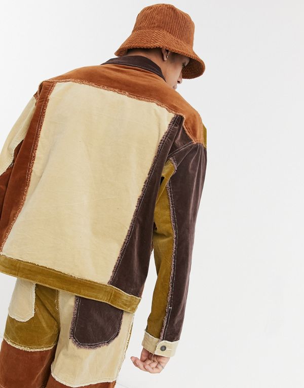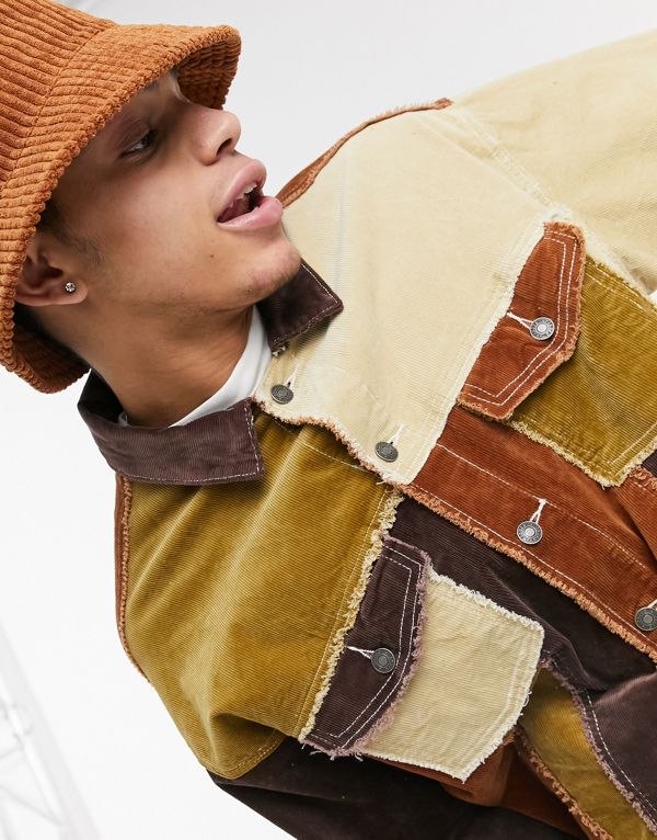 ジェイデッドロンドン Jaded London JADED LONDON JadedLondonの擦り切れたパッチワークデニムジャケット(ブラウンコーデュロイ) アウター メンズ 男性 インポートブランド 小さいサイズから大きいサイズまで