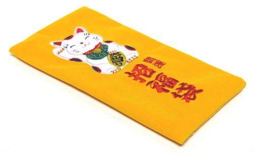 開運招福袋招き猫の開運宝くじ入れ 金運を呼び込む幸福の黄色の招福袋です。