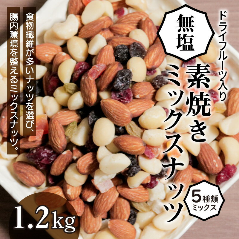 【ふるさと納税】【ドライフルーツ入り】無塩の素焼きミックスナッツ1.2kg H059-016