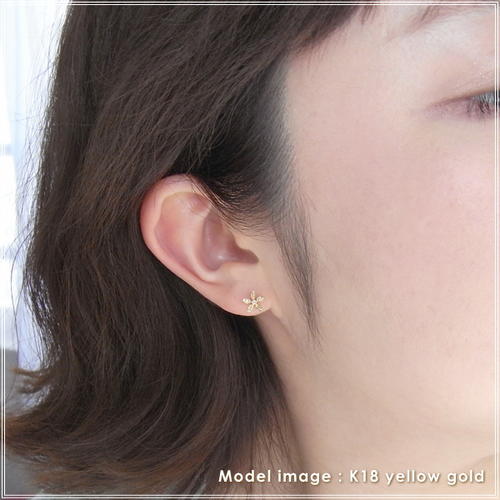 ●トップ ( モチーフ ) 幅:約6.5mm 高さ:約6.5mm 厚さ:約1.5mm ●宝石 天然ダイヤモンド:(ペア)12石 合計約0.06ct ●ポスト(針) 18金ゴールド:約10mm ●留め具:シリコン付きキャッチ ●金種:全て18金ゴールド イエローゴールド(yg)・ホワイトゴールド(wg)・ピンクゴールド(pg) ●備考 ・金属アレルギーを引き起こすニッケルは使用しておりません。