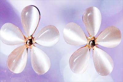 5枚花びらフラワー(花)モチーフ 天然石 ムーンストーン装飾 イエローゴールドカラー レディース ピアス